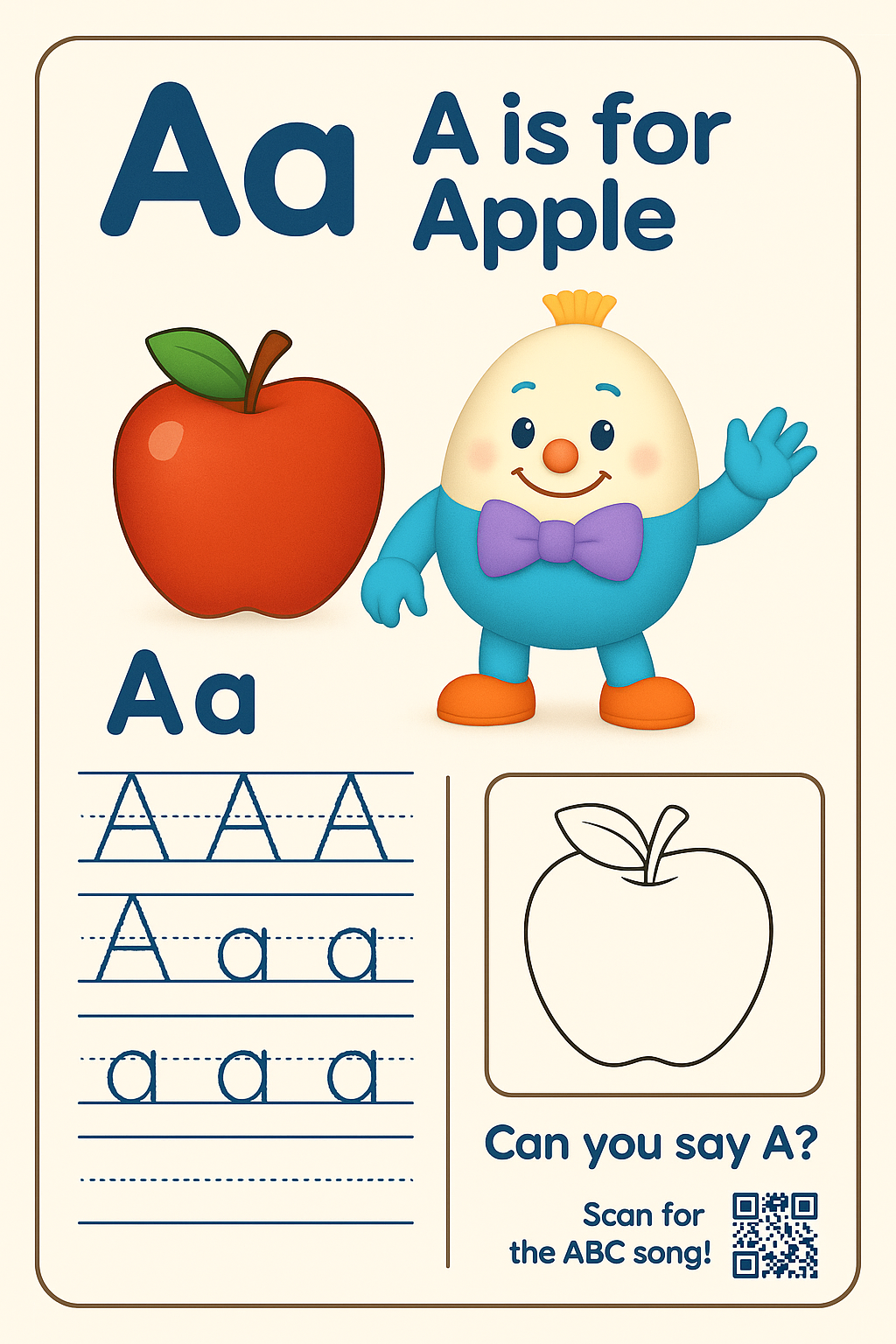 - 프린트 가능한 ABC 연습지, 색칠 도안, 스티커 도안 제공